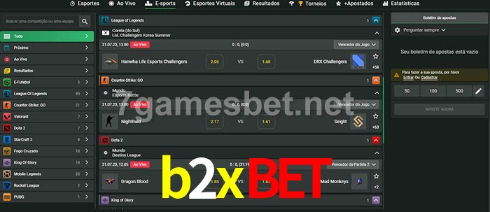 O b2xbet oferece uma grande seleção de opções de apostas em e-sports com probabilidades competitivas